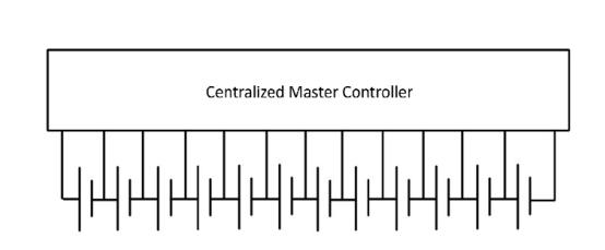 Incentralizedtopology,eachbatterypackcellisimmediately connectedtoacentralizedmastercontrolunit.Allcellsare safeguardedandbalancedbythemanagementunit,which alsoservesanumberofotherpurposes.
