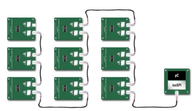 The isoSPI interface offers a high RF noise immunity interface that enables daisy-chaining of modules over lengthycablelengthsanddataratesofupto1Mbps.