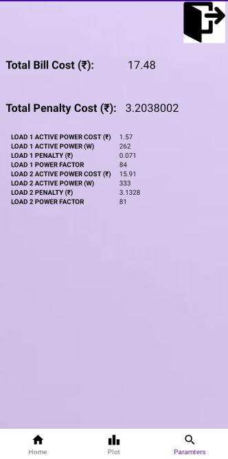 The smart meter will send the calculated values (Power, Power factor, Penalty factor, Power consumption) in an encrypted format to the online database where the data will be stored. This encrypted data will then be available for access to the user on another database, where individual values will be decrypted and shown accordingly. the user with the help of an android application can view the collected data from the loads consideredinanorganizedmanner.