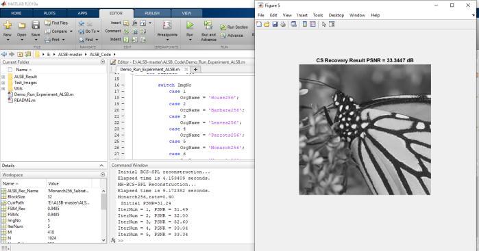 Theproposedalgorithmiscomparedwithfourtypesof cs recovery methods i.e., wavelet method (DWT) , total variation (TV) method , multi-hypothesis (MH) method , collaborativesparsity(CoS)method,whichdealwithimage signals in the wavelet domain, the gradient domain, the randomprojectionresidualdomain,andthehybridspacetransformdomain,respectively.Itisworthemphasizingthat MH and CoS are known as the current state-of-the-art algorithmsforimageCSrecovery.Theproposedalgorithm canbeexecutedindualnaturethattoeliminatetheringing effectsandtopreservemuchshaperedgesandfinerdetails, whichshowsmuchclearerandbettervisualresultsthanthe othercompetingmethodsOurworkalsooffersafreshand successfulinstancetocorroboratetheCStheoryappliedfor naturalimages.