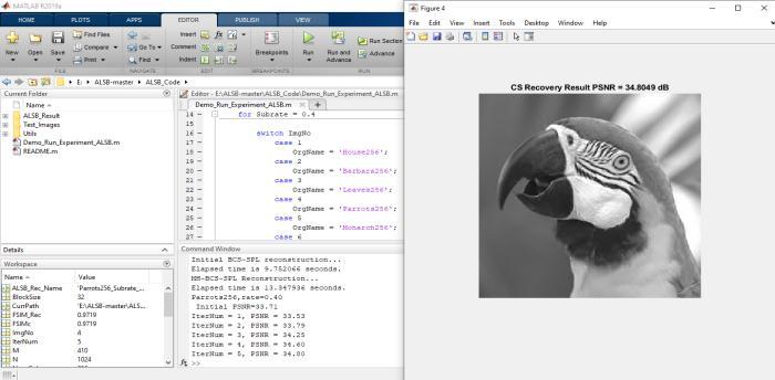 Inourexperiments,theCSmeasurementsareproduced by applyingaGaussianrandomprojectionmatrixtotheoriginal imagesignalatblocklevel,Thevalueof λ isrelatedtothe overlappedstepsize,whichwillbegiveninthefollowing.All the experiments are performed in Matlab 7.12.0 on a Dell OPTIPLEX computer with Intel(R) Core(TM) 2 Duo CPU E8400processor(3.00GHz),3.25Gmemory,andWindows XPoperatingsystem.