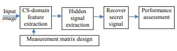 AdatahidingisbasedonsubsamplingandCSwasscheduled totherelyingonthe CSpropertiesincludingsparsitywith randomprojectionthenthesecretdatacanbeembeddedin the observation domain of the image. The method was further extended to an image steganography algorithm in terms of some details on design procedures and experiments,buttheyareroughlyconsistentinthetrainof thought