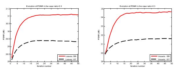 Fig-2: ComparisonbetweenSBIandISTforsolvingour proposedl0minimization Fromlefttoright:progression ofthePSNR(dB)