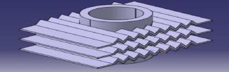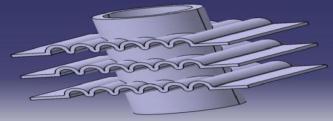 Inthiswork,theynumericallyinvestigatetheeffectofdifferentfingeometriesontheoverallheattransferfromanair-cooled finassemblymountedonacylindricalsurface.Inthispaper,theheattransferandheattransfercoefficientofthreefinmodels (rectangular,wavyandzigzag)werestudied.ThestructurewasmodeledwithCATIAV5softwareandthermallyanalyzedusing ANSYSFluentsoftware.AcylinderwiththreeribsusedforCFDanalysis.Thealuminumslatdimensionsareassumedtobe220x 150x1mm.Theouterdiameterofthecylinderis72mm.70mminnerdiameter,1mmthickness.Thelengthofthecylinderis 80mm.