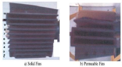 AshokTukaramPiseconductedexperimentforcomparingtheheattransfercoefficientsofsolidandpermeablefins.The permeableribsareformedbyalteringthesolidrectangularribsbydrillingthreeholesperrib,inclinedathalftheriblengthof thetwo-wheelcylinderblock.Solid,permeableribblockswerekeptinanisolatedchamberandtheefficacyofeachribinthese blockswascalculated.