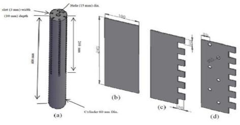 Experimentationwascarriedoutonconfigurationwith10fins.Dimensionsoffinandbaseplatemadeofaluminummaterial aretakenas(75*27*2mm)and(76*75*2mm)respectively.Heatinputwasprovidedas15W,25W,35W,45W.Resultimplies thattheenhancementintheheattransfercoefficientwasachievedwiththeincreaseinthefinperforationdiameter.Withthe variationinfininclinationanglefrom0to90alsotheheattransferwasenhanced.[5]