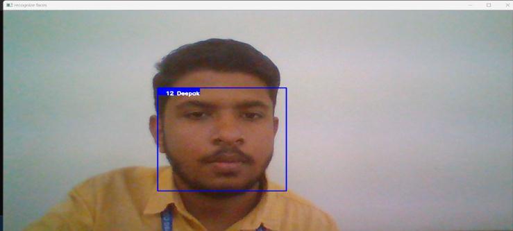 (4)Verifyingtheidentity:Thefacialrecognitionmodelwill produceaconfidencescoreindicatingthesimilaritybetween thecapturedfacialimageandthedatasetoffacialimages.If the confidence score is above a certain threshold, the person'sidentityisverified,andtheirattendanceismarked.