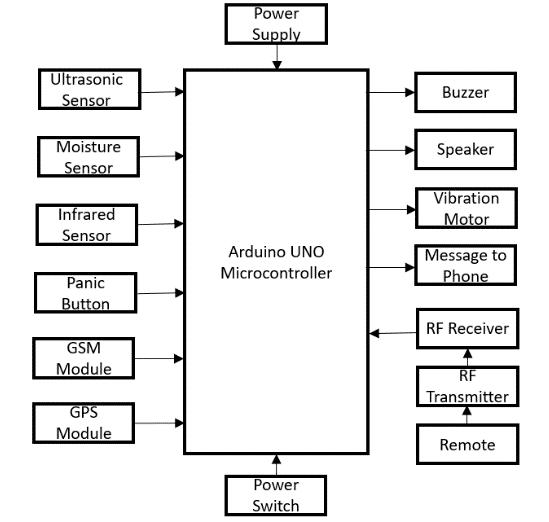 Theproposedsystemforthemultifunctionalblindstickisa device that incorporates multiple functions to aid visually impairedindividualsintheirdailyactivities.Thedevice is designed to be compact and portable, making it easy for users to carry with them wherever they go. The device is designedtohavealongbatterylife,allowinguserstouseit forlongertimewiththehelpofsolarchargingunitwithout needing to recharge it frequently. The device is equipped with sensors that can detect obstacles in the user's path, such as stairs, or other hazards. The sensors can provide feedback to the user through vibrations or audible alerts. The device includes GPS and GSM module that allows the usertosendmessagestotheirfamilymembersorfriendsin case of emergency. It also includes RF module to find the misplacedstick.