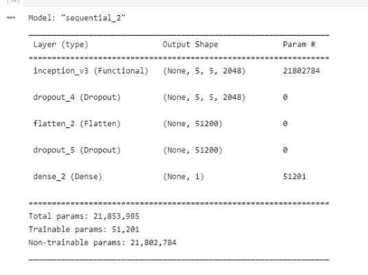 Imageswerereshapedinto244×244sizeandpassedthroughaconvolutionallayerwiththreefilters.Subsequently,theoutput passesthroughmaxpoolandflatteninglayers.Themodelhasbeentrainedwith30,120epochs.