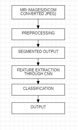 We propose a method that is sequential in its operation. It uses techniques such as convolutional neural network, max pooling,flatteninganda dropoutlayertoavoidover-fitting.Weusetransferlearningto assign weightstoourfeatures.The MRI image(JPEG) sequentially goes through the above stated layers and feature extraction is performed.DICOM images is large in size when we use to it to train model parameter increase so to decrease parameter we use dicom converted jpeg imagesfrom Kaggle. The MRIimages(JPEG)havebeen dividedintotrainingandtestingpartswherethefirstpartisused for furthertrainingofa VGG-16CNN,ResNet-50,Inceptionv3.