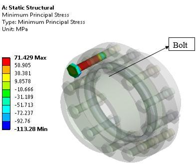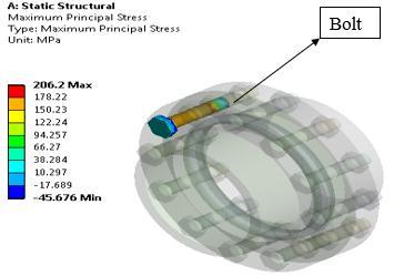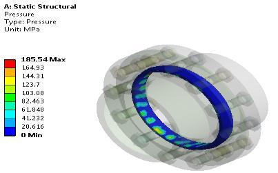 Load consideration: Bolt pretension is 49000N, Pressureis15MPa