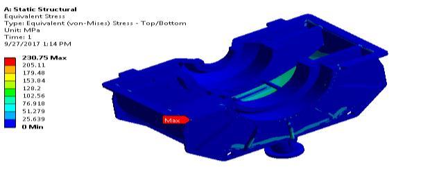 Thecasinginthisfigure'scorrespondingstress.Redindicates themaximumstressdistribution,whichis230.75MPa.