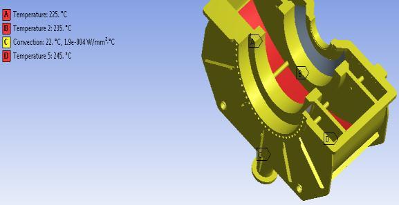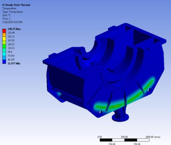 Thetemperaturechangeinthecasingfromthebeginningof thesteamentrytotheendisrepresentedbythisfigure.The redcolorrepresentsthemaximumtemperatureof245°C.