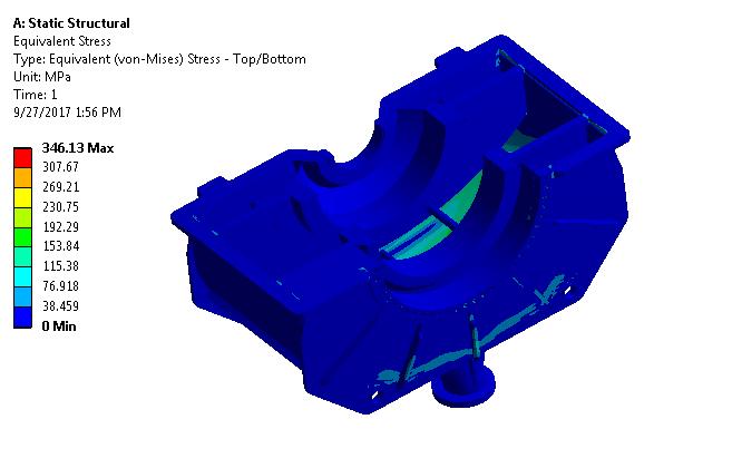 Insteadystateanalysisandtheequivalentstress,thisfigure illustrates the stress distribution in the casing. About 346.13MPaofequivalentstressexists