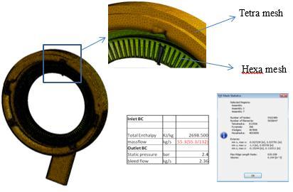 Thereare132nozzles,withaflowrateof55.3/132,andwe have applied a mass flow of 0.418kg/sec for each nozzle. Between the nozzle and blade and between the blade and cavity,wehaveusedastageinterface.