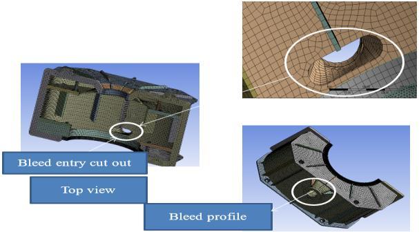 Different views of bleed in casing of a turbine with meshing