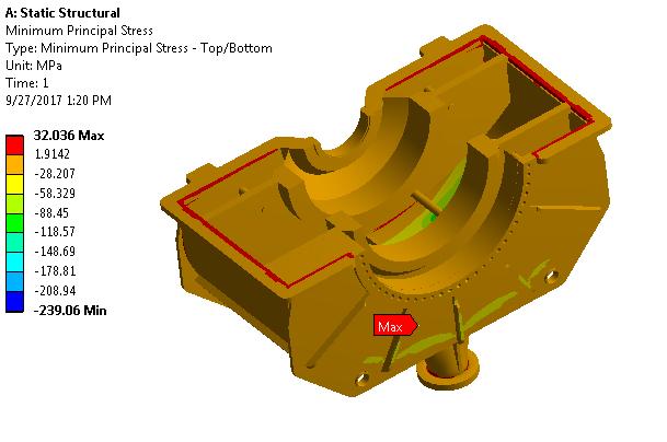 In steady state analysis, this figure shows the minimum principal stressinthecasing.Isabout32.036MPaanditis indicatedinred.