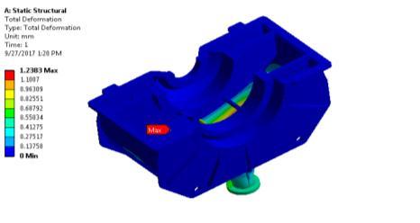 Intheabovefigureredcolorindicatesoveralldeformationin thecasing.Obtainedmaximumdeformationis1.8574mm.