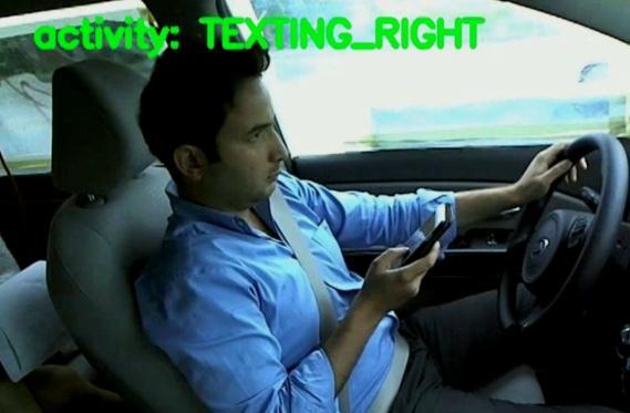 achieve an average precision of 70.09% [1]. Another study focused on detecting a driver using a cell phone. The authors usedAdaBoostclassifiersandahistogramofgradients(HOGs) to locate the landmarks on the face, and then extracted bounding boxes from the left to the right side of the face [2]. Segmentation and training were used to achieve 93.9% accuracy at 7.5 frames per second. To further explore distracteddriving,amorecomprehensivedatasetwascreated that took into account four different activities: safe driving, using the shift lever, eating, and talking on a cell phone [3]. Thecontourlettransformandrandomforestwereusedbythe authors to achieve an accuracy of 90.5%. Additionally, Faster R-CNN [4] was suggested and a system with a pyramid of the histogramofgradients(PHOG)andmultilayerperceptronwas usedtoproduceanaccuracyof94.75%.
