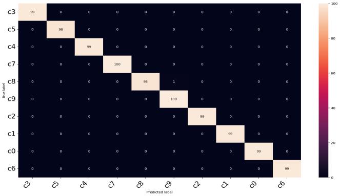 With the hope of increasing accuracy, the convolutional neural network is being tested for the detection of a distracted driver. The database is split into two datasets, training, and testing. CNN determineswhetheraDriverisdistractedornot,and ifso,italsoforecaststhetypeofdistraction.TheCNN model was trained using a 25-epoch. The performanceoftheCNNmodelonthetestingdataset during training is shown in Figures 4 and 5. Figure 2 displaysasampleconfusionmatrix.
