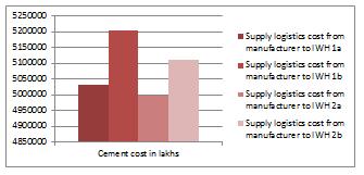 Thelogisticscostofthesite withintermediatewarehouse reducesthelogisticscostby7%-19%fromthiscase.When compared with each scenario, the price of transportation fromquarries/plantstoanintermediatewarehousebyroad indicated a potential optimal plan. These elements can be capturedbydefiningappropriatenumberofvariousdecision variablessuchasdistance,fastestroute,timetakentoreach thedestination,andvehiclesize.Theresultsshowedthatthe percentagesavinginlogisticscostandthefeasiblesolutionis obtained from 16 possible routes (refer above table). The leastpossiblerouteis4-5%lesserthantheotherroutes.