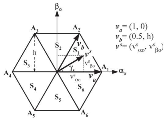 On-timecalculationforanyofthesixsectorsSi,i=1,2,...,6is same,soletusconsidertheoperationinsector1.On-time calculationisbasedonthelocationofthereferencevector within a sector. For the sector 1 in Fig. 3, the volt-second balanceisgivenby Timebalanceisgivenby
