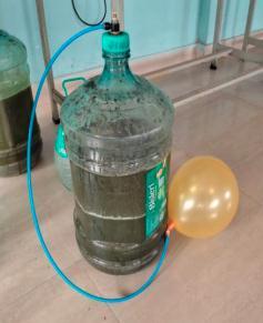 After 24 hours we found that the container is been filled withbiogaswhichisthentrappedintheanothercontainer forfurtherusageorfurthercompressiontostore.