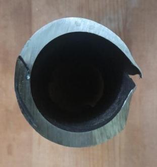 By observing cross section of the economizer and RH tube,itcouldbenotedthathalfofthecrosssection ofthe tube segment was thinner than the other. Figure 3.1 (a) & (b) presents image after making a single cut along transverse plane of failed economizer and RH tube respectively