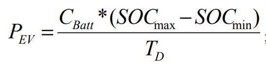 Where CBatt is the battery capacity, TD is the duration of charging.BatterySOCisafactorwhethertheEVtakeshigh orsmallpower.ThegrosspowerdemandoftheEVsisthe summation of individual power demand of all EVs which likelysignifiesasinEquation(2).