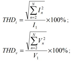 Equation (3) & (4) express the Total Harmonic Distortion (THD) for current and voltage respectively [6]. For slow
