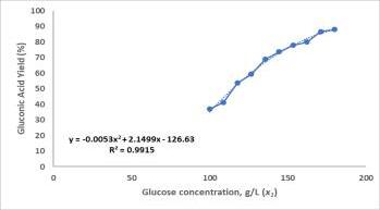 Gluconic Acid Yield= (Moles of gluconic acid produced)/(Moles of glucose consumed)(1)