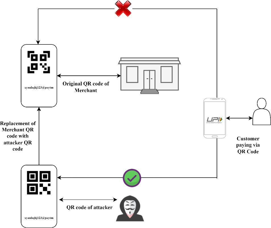 One trend in UPI frauds using social engineering is targeted towards merchant accounts opting for UPI paymentsusingQRcodewhichiswhatourresearchpaper focuses on. A simple working of this technique is that a user scans the QR code implanted by a merchant and instantly gets account details of the user after which the user can opt to enter the amount on their respective UPI application and proceed to pay the merchant. As the number of merchants opting for UPI based payments is increasing, so is the commensurate amount of UPI based fraudswiththesemerchants.