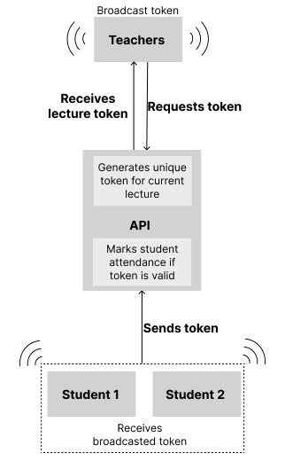The API generates a new unique token for the ongoing lecture and sends it to the teacher as a response. In the third step, the teacher uses Bluetooth services such as BluetoothLEAdvertiser or Nearby API to broadcast the token to the students. The fourth step involves the students receiving the token and sending it to the API for verification of attendance for the ongoing lecture. In the fifth step, the API verifies the token and checks if the student is enrolled for that lecture. If all conditions are satisfied, the student's attendance is marked. Finally, in thesixthstep,afterthelectureends,theattendancetoken expires, preventing students from marking proxy attendance. The attendance algorithm streamlines the entire attendance process, making it more efficient and accurate, ensuring that students attend their classes regularlyandontime.