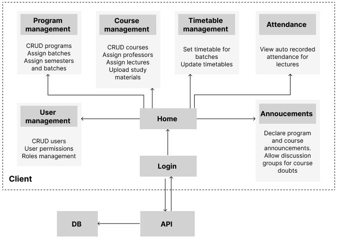 The system divides users into 3 categories: STUDENT, TEACHER and ADMIN. The user management system enables the admin users to create new users for students and other faculty members and manage their access and permissionsinthesystembyusingtheabove3categories. It ensures that each user has the appropriate level of access to the system, depending on their role and responsibilities. The system also ensures that each user has a distinct login ID and password that is specific to them. Forinstance,studentsmayonlyhaveaccesstotheir course material and assignments, while faculty members mayhaveaccesstogradingandattendancerecords.Italso managesusers'accesstoapplicationfeatureseg:updating the timetable can only be done by the TEACHER not by student.