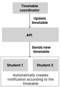 In this module an assigned timetable coordinator will periodically update timetables which will automaticallynotifystudentsasneeded.