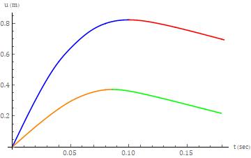 Forthismodel,thelengthofthemasslesselement,atto=0is takenasbeingequaltothereferencelengthoftheelement (i.e.thelengthatwhichtheelementcarrieszeroforce). This allowsforaninitialconditionof u1(0)= u1o = 0. Theother initialconditionisofafinite,non-zero,initialvelocity, v1(0) = v1o, for the test vehicle. The time domain kinematic solutionsfortheclosurephase,forthismodel,are[14]: