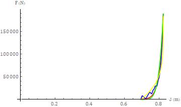 Forthelowerseveritytest,thefirstmodelproducedapower termof23.14andwitharesidualforcemagnitudeof9.147 10-1 N. Thesecondmodelproducedapowertermof9.001. Thethirdmodelproducedapowertermof1.11110-1. The three model fits to the separation phase force-deflection responseareshowninFigure13.
