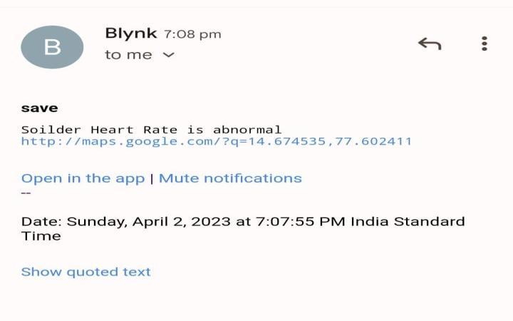The working model of this project is for soldiers involves severalinterconnectedcomponents.Thesystemcomprises biometricsensorsthatcollecthealthdatasuchasheartrate, blood pressure, and temperature from soldiers. The GPS module collects location data, which is transmitted along with the health data to a microcontroller. The