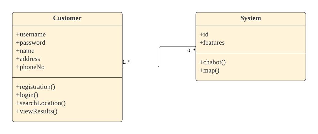 Figure 4 is the class diagram of our system. Here in this diagram,Thereare2classes.TheUserandtheSystem.Each classhasitsattributesandoperations.Theuserregistersin registration and logins into the system. He can search the locationsandviewtheresults.Andthesystemdisplays the chatbot and shows the map.