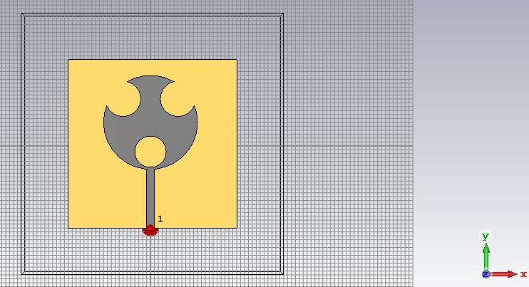 x43mmrectangularantennaboardisused.Apatchiscreatedonthesubstrateintheshapeofatri-cutcircle,witha21 mmx-axislengthanda22mmy-axislength.