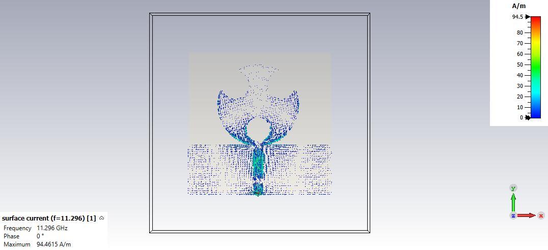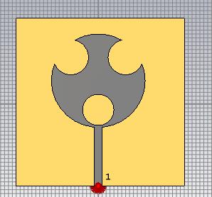 Tosimulateantennas,tri-cutcircledesignshavebeenproposedtoimprovebandwidthandgain.Fig.(5)Showsanew tri-cutcircle-shapedportableantennaoperatingatresonantfrequenciesof3.892GHz,5.477GHz,and11.296GHz.A43
