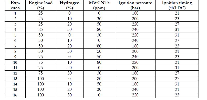 Abstract - In conclusion the optimal settings of those factors for better performance of the tested engine which are 25% engine load 20% hydrogen 50 ppm mwcnt 220 bar ignition pressure and 21 obTDC ignition timing