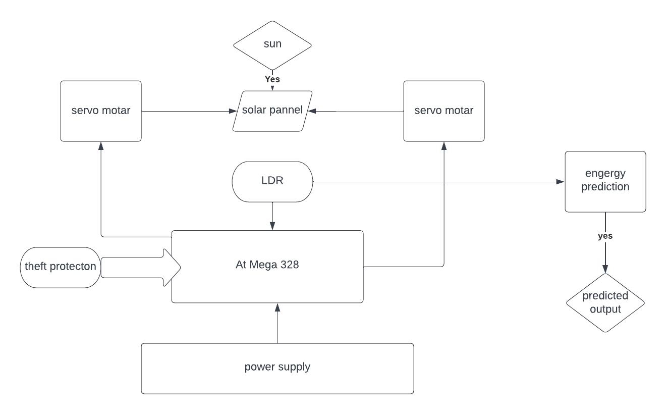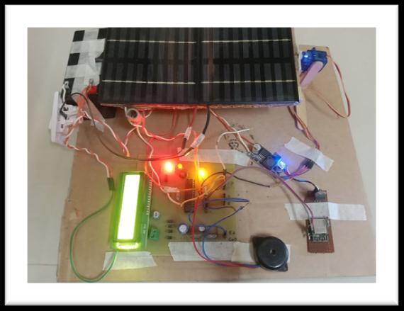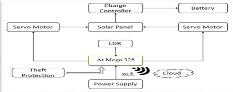 Thesystemconsistsoftwoservomotorsmountedattheend of solar panel for rotation of solar panel according to the intensityofsunlight.AstheintensityoflightattheLDR1is morethantheresistanceofLDR1decreasesandthecurrent throughLDR1increasesthusservomotorrotatestowards theLDR1andviceversa.