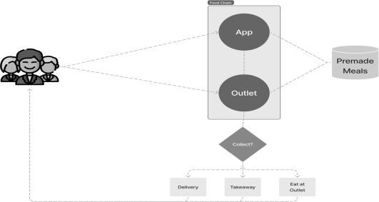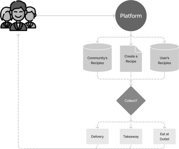 Order & Delivery is the section that deals with the processing of orders and tracking of deliveries. This is the infrastructure side of the concept that deals with ordering therecipesfromtheplatformtohavethempreparedlocally and have it delivered to the user. This side of the application includes payments, delivery tracking, and an outletlocator.