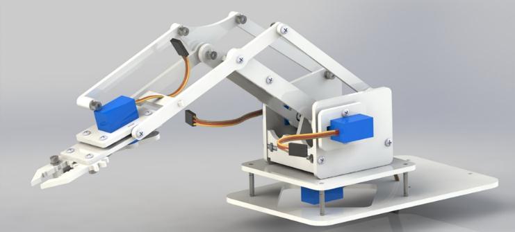 In our work the robotic arm we deigned is visualized in thepictureabove.Inthisconfigurationwehave4Degrees of Freedom, named Base, Shoulder, Elbow and Gripper. Eachjointisrotatedorgivenanangularadjustmentusing servo motor, Servo Motors are electromechanical devices which converts the electrical energy into angular mechanicalenergy.