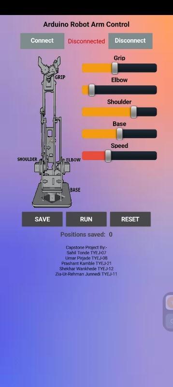 App contains sliders to adjust robotic arm’s joints as shown in Fig.9. The Robotic arm moves according to the valuesandlimitsimplementedintheapp.