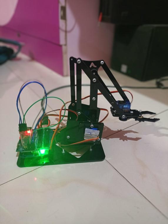 2)Even though the robotic arm has only 4DOF it can still perform crucial tasks accurately and precisely if the jitter problemissolved.