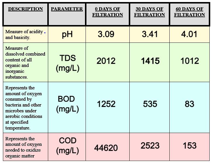 Garbage Enzyme has been successfully used to treat Greywater, Sewage Wastewater, Dairy Wastewater and Landfill Leachate. Treatment time for wastewater treated with GE varies from study to study and depends on how effective the GE solution is. Wastewater treatment time can be decreased if finely crushed organic waste is used for the preparation of enzyme solution, leading to better fermentation. Treatment time was found to be 5 days when enzyme is used 60 days after filtration as it takes time for the parametersin GEtostabilize.[3][7] Forother studies, the minimum treatment time was observed to be 25-27daysfromavailableliterature.