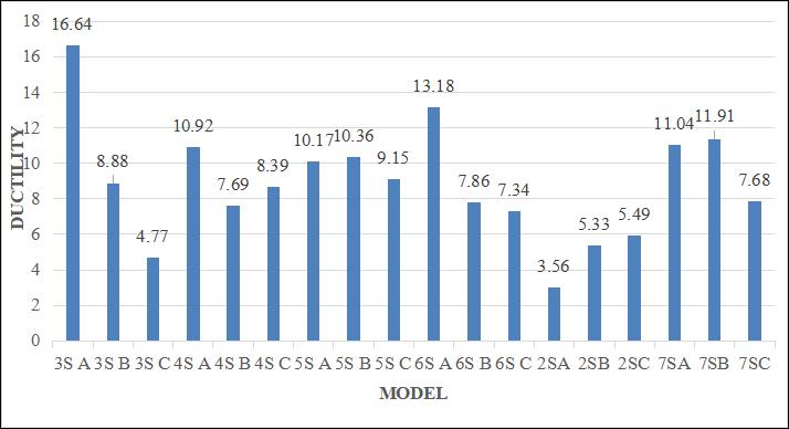 4. From the analysis 3sa model (3 slit model with max space) have maximum ductility and 3sa split 9 have maximum energyabsorptioncapacity