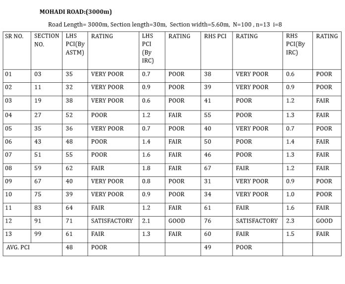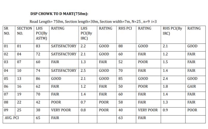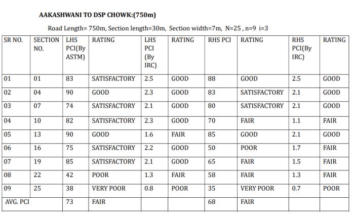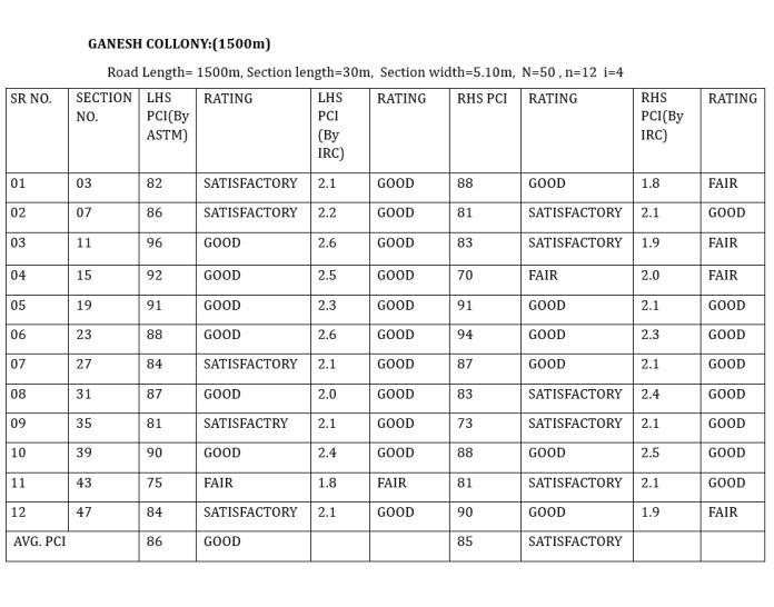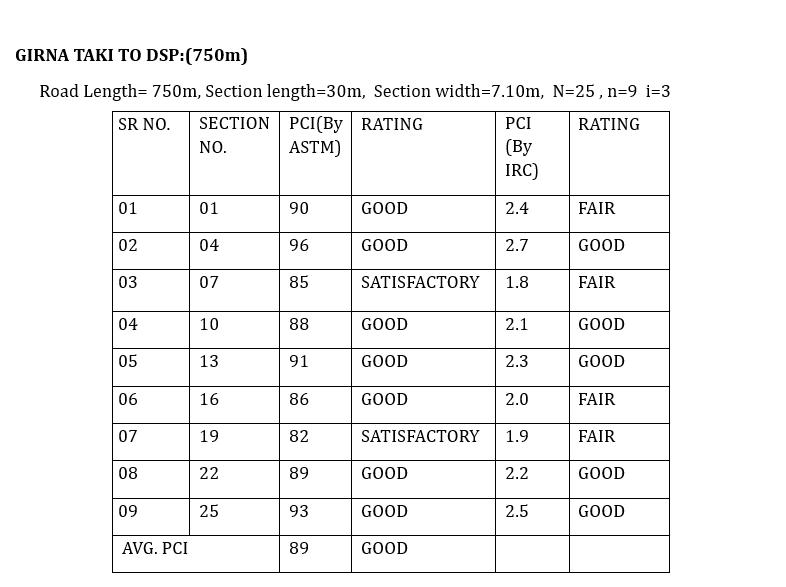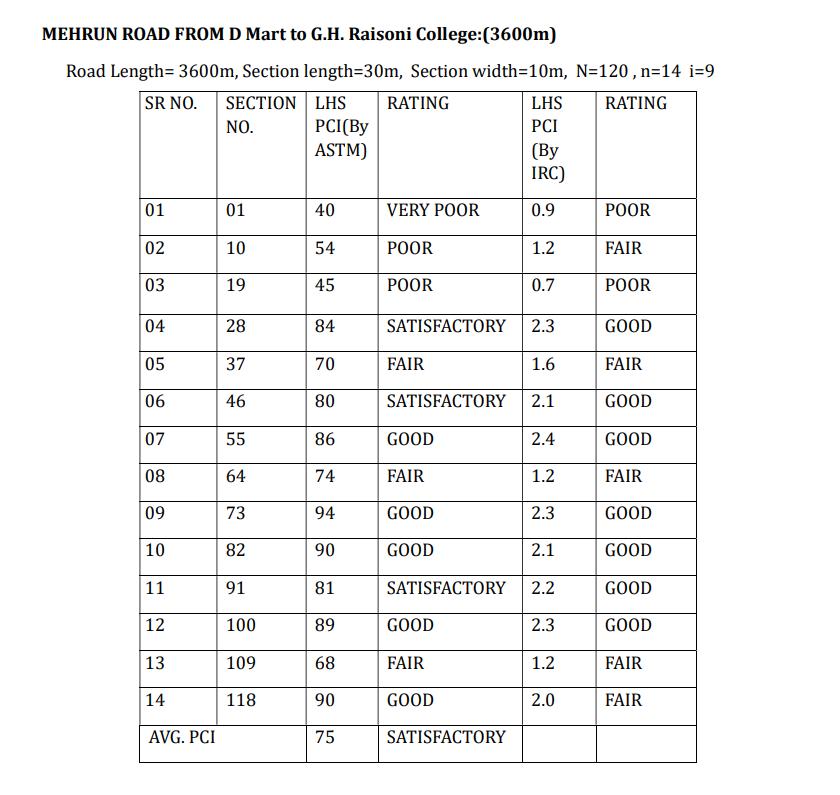 ThePCIRatingoftheselectedroadsintheJalgaoncitywill varyinbetweenPoortoVeryGood(ByASTM),FairtoGood (ByIRC).